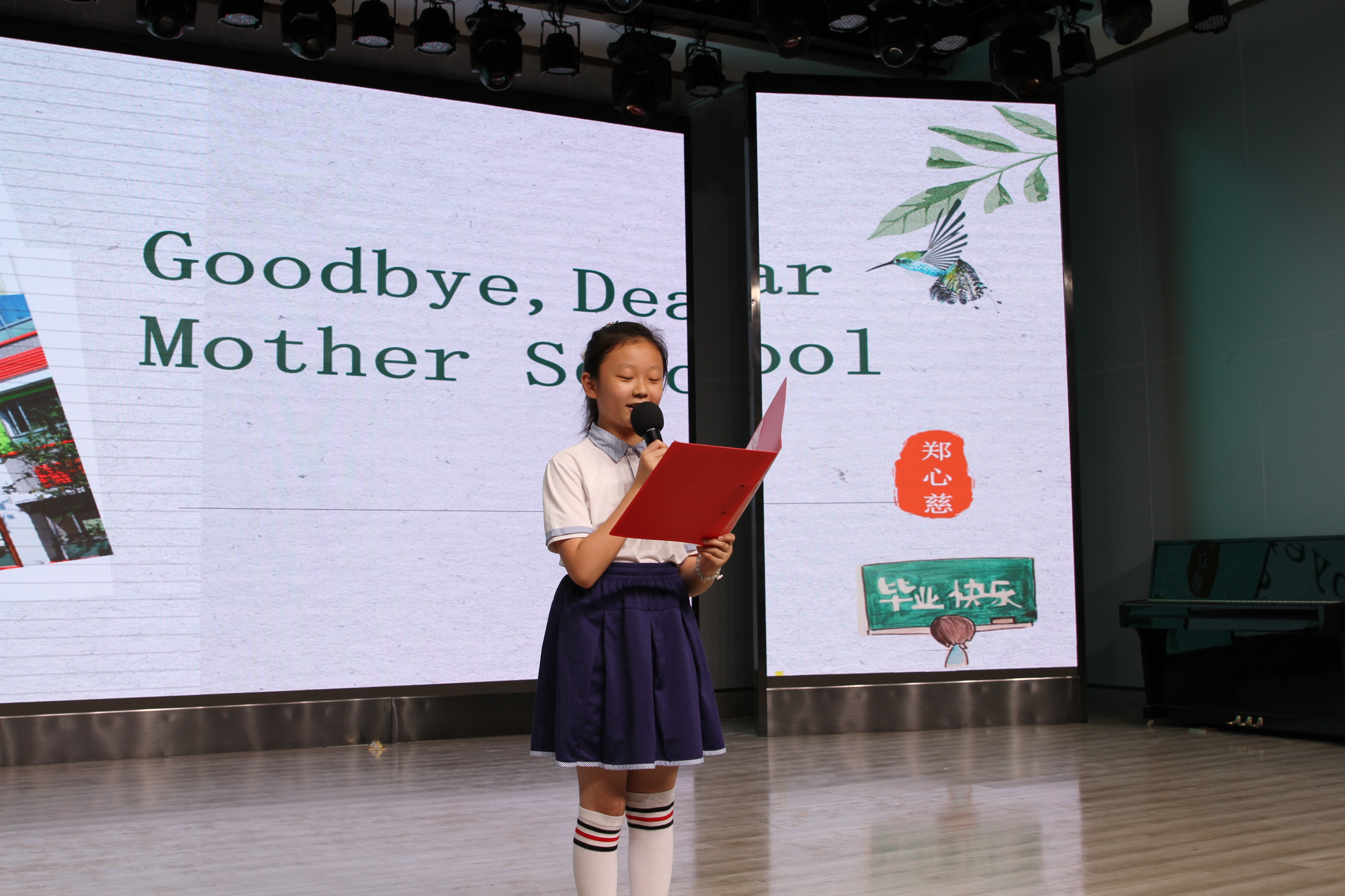 活动中,毕业生为母校捐赠锦旗和纪念品。学生代表献唱京剧《梨花颂》,合唱团献唱歌曲《如愿》,六年级学生郑心慈用一首英文诗歌,感恩母校的培育。同时,六年级各班用动听的琴声、激情的演奏,表达了对梦想的追求和对未来的执着,表达了对学校和老师真挚的祝福和感谢。