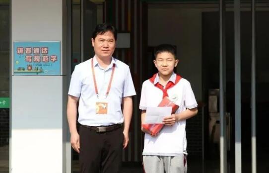 5月23日,济南师范学校附属小学校长朱峰在升旗仪式上为六年级六班学生郝文涛颁发“拾金不昧好少年”奖。