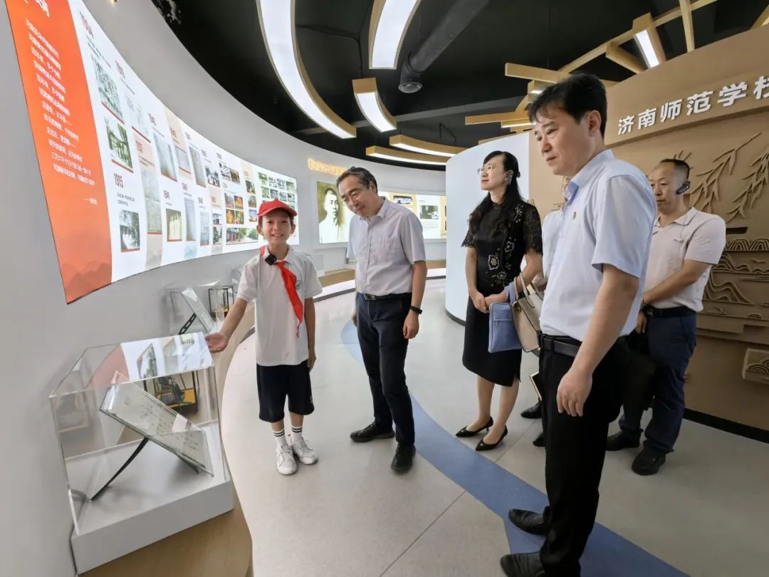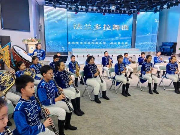 与会专家来宾在红领巾讲解员的带领下,漫步浮雕文化长廊,参观百年校史馆,了解附小“敢为人先”的百年传承,感受附小“追求卓越”的深厚底蕴。在学校多功能厅,与会专家来宾欣赏了学校“哆来咪”合唱团、旋风管乐团、梨园京剧社等诸多学生艺术社团的展示,一同见证济师附小艺术教育的丰硕成果。