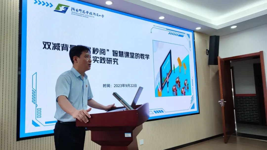 朱峰校长进行了《双减背景下“秒阅”智慧课堂的教学实践研究》课题开题报告。朱峰校长就课题研究的目的和价值、核心概念和框架、现状分析、思路方法、预期成果以及分工步骤等方面做了细致阐释。“优管”建设工程小学组的三位专家和十一位校长以及济师附小课题组成员参加了开题论证会。毕诗文、汤善香、丁莉莉三位专家对本课题研究方向给予了充分肯定和鼓励,并对开题报告进行了专业细致的指导。朱峰校长最后表达感谢。他表示,相信此课题研究一定会在专家的指导引领下,在“优管”校长团队的帮助促进下,扎实开展,稳步推进,落地见效,早结硕果。