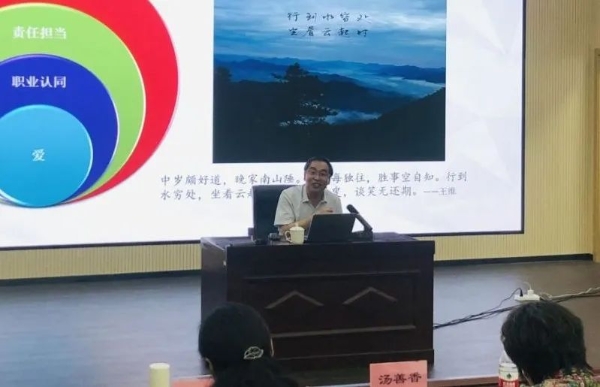 最后,在学校报告厅,毕诗文教授进行了题为《新时代优秀教师发展的路径与策略》的专题报告。毕教授的报告站位高远、思路清晰、内容丰富、思想深邃,既有理论高度,又有实践深度,为老师们在新时代背景下的专业发展、自我提升之路指明方向,提供引领。