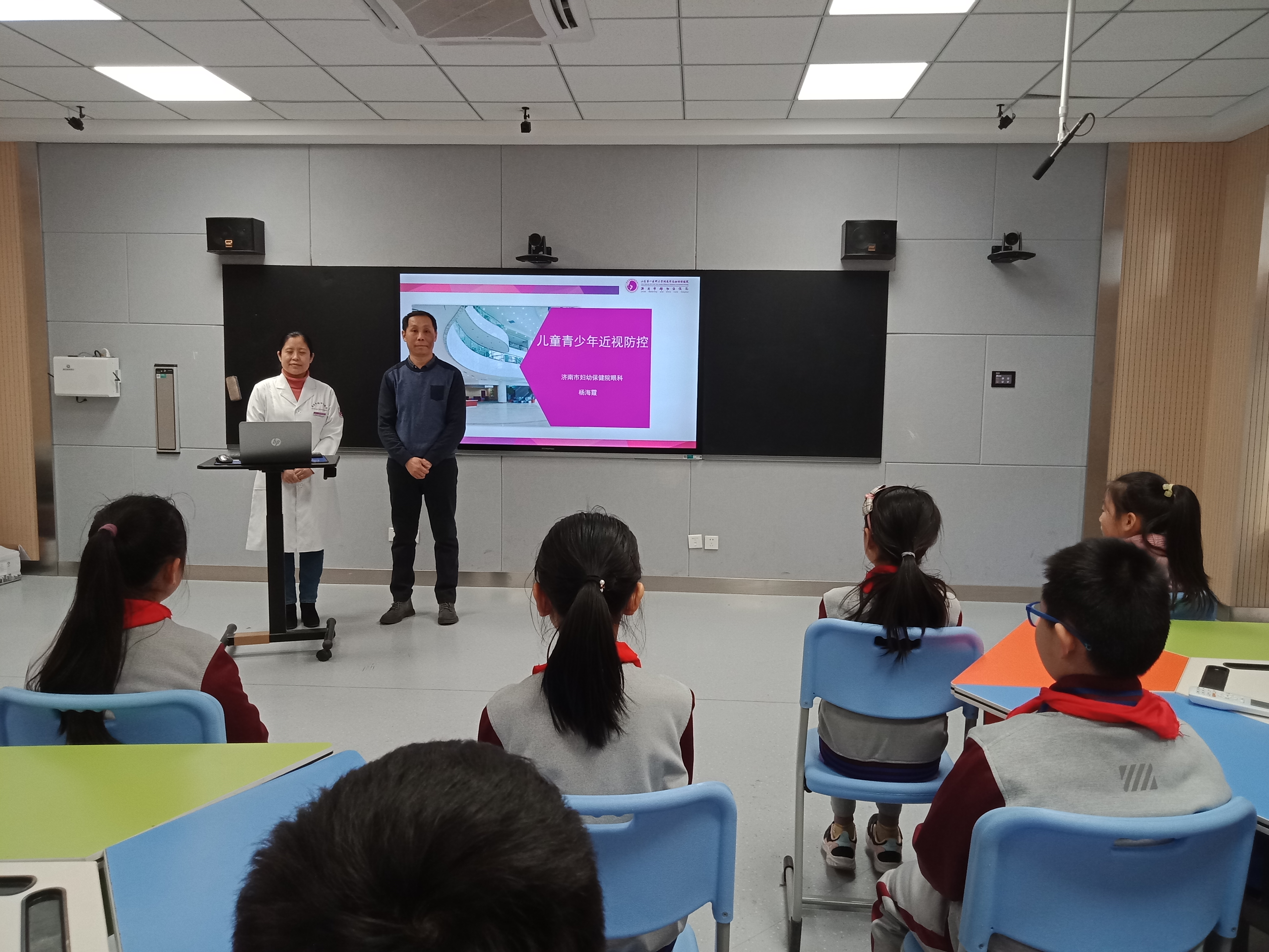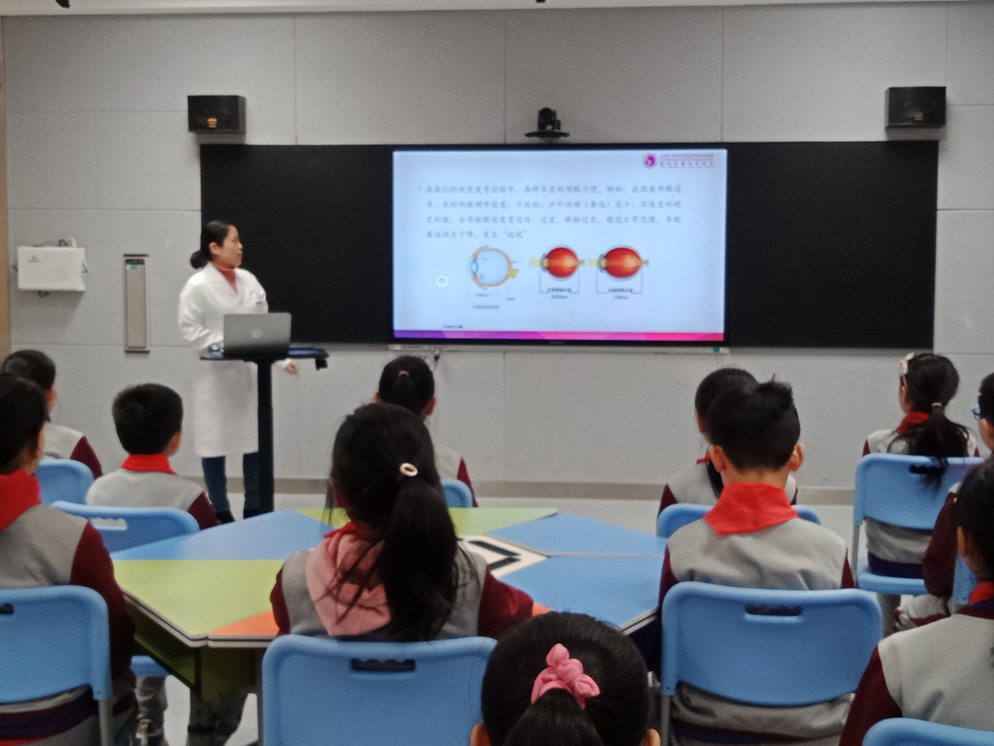为了呵护好孩子的视力,让他们拥有一个光明的未来,新学期伊始,济南师范学校附属小学邀请济南妇幼保健院眼科主治医师、眼科学硕士杨海霞为全校学生普及爱眼知识,进行爱眼护眼的教育指导。